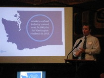 Andy Wink of the Alaska-based research firm the McDowell Group presented data from the report, the first of its kind, showing the economic importance of the Alaska seafood industry on the rest of the country, specifically the Pacific Northwest.