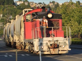The Ballard operation runs from near the Fremont border all the way to meet the BNSF track at Shilshole. The three miles of old track are not rated for passenger trains but are wholly adequate for its industrial cargo. For example, the Railroad delivers cars containing cement, fly ash, stucco and mortar to Salmon Bay Sand and Gravel two to three times per week, typically at night.